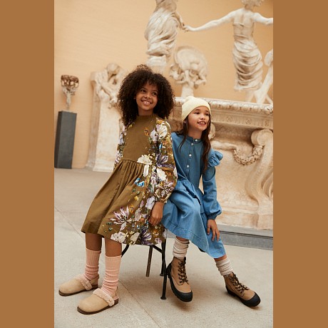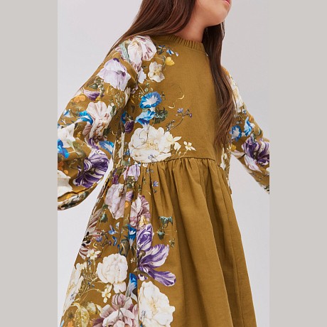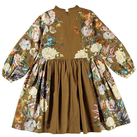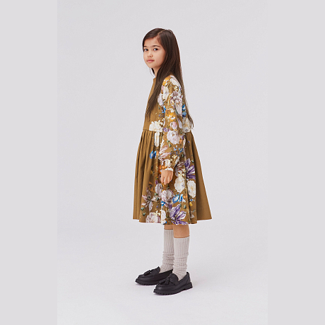 Платье для девочки Molo – это идеальный выбор для маленьких модниц! Изготовленное из 100% органического хлопка, оно украшено изысканным цветочным принтом с крупными белыми и розовыми пионами, синими и фиолетовыми лепестками, а также зелеными листьями на коричневом фоне. Нежная ткань с цветочным принтом создает романтичное и комфортное настроение. На фотографии видна аккуратная посадка платья с пышной юбкой и рукавами-фонариками. Качество от бренда из Дании и внимание к деталям делают эту одежду отличным выбором для вашего ребенка!