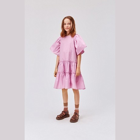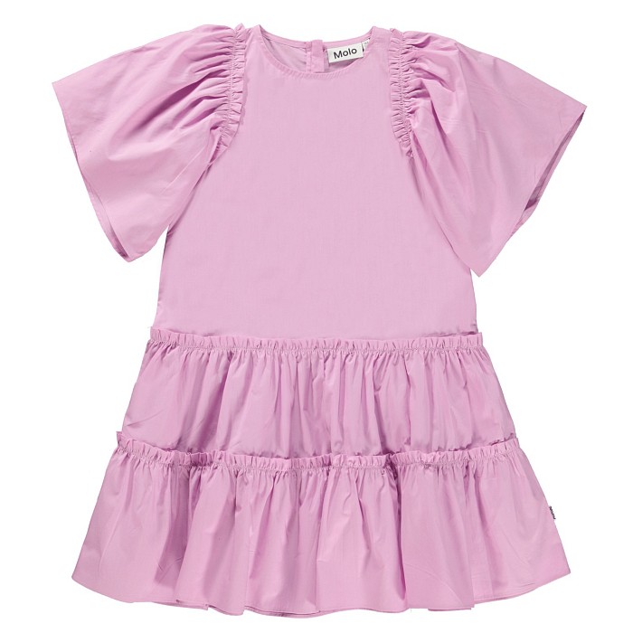 Платье для девочки Molo – это идеальный выбор для маленьких модниц! Изготовленное из 100% органического хлопка, оно украшено элегантными оборками и эластичным поясом. Нежная пастельная пудровая расцветка и стильный дизайн делают это платье неотъемлемой частью гардероба вашей девочки. На фотографии видна эластичная резинка пояса и мягкая текстура ткани. Качество от бренда из Дании и внимание к деталям делают эту модель отличным выбором для вашего ребенка!