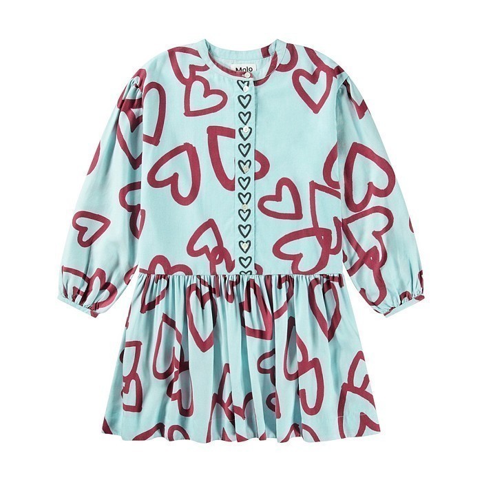 Платье для девочек Molo светло-голубое с очаровательными сердечками – это идеальный выбор для маленьких принцесс! Изготовлено из 100% вискозы, платье с длинными рукавами и округлым вырезом горловины. Светло-голубой фон с яркими красными сердечками создает нежный и романтичный образ. На передней части платья расположены красивые сердечки, а на рукавах – маленькие сердечки с пуговицами. Качество от датского бренда Molo и внимание к деталям делают это платье отличным выбором для вашего ребенка!