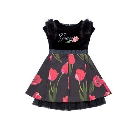 Платье Lapin House с принтом тюльпанов и мехом - доставка СДЭК по всей России - 72E3457/17-02