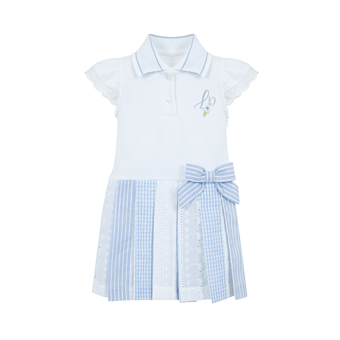 Платье для девочки Lapin House – это идеальный выбор для теплых дней! Изготовленное из 100% хлопка, оно украшено нежной вышивкой и элегантным бантом. Белая основа с голубыми полосками в клетку создает легкость и свежесть. На платье видна аккуратная вышивка с буквой "L" и цветочками, а также мягкая текстура ткани. Качество от Греции и внимание к деталям делают это платье отличным выбором для вашего ребенка!
