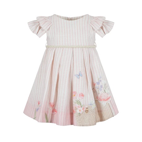 Платье для девочки Lapin House – это идеальный выбор для летних прогулок! Изготовленное из 100% льна и подкладки из 100% хлопка, оно украшено очаровательным принтом с цветами и бабочками на бледно-розовом фоне. Нежная ткань с аккуратными розовыми полосками создает легкость и уют. На фотографиях видны яркие розовые цветы, бабочки и аккуратная белая окантовка по краю. Качество от бренда из Греции и внимание к деталям делают эту модель отличным выбором для вашего ребенка!