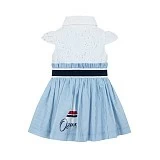 Платье для девочек Lapin House – это идеальный выбор для маленьких модниц! Изготовленное из 99% хлопка и 1% полиэстера с подкладкой из 100% хлопка, оно идеально подойдет для теплых дней. Белое платье с нежным принтом и элегантным бантом создает неповторимый стиль. На передней части платья виден белый принт с голубыми полосами и красными элементами, а также надпись "Ocean". На спине – голубые полосы и надпись "Ocean". Бантик на талии придает платью дополнительный шарм и удобство. Качество от бренда из Греции и внимание к деталям делают эту модель отличным выбором для вашего ребенка!