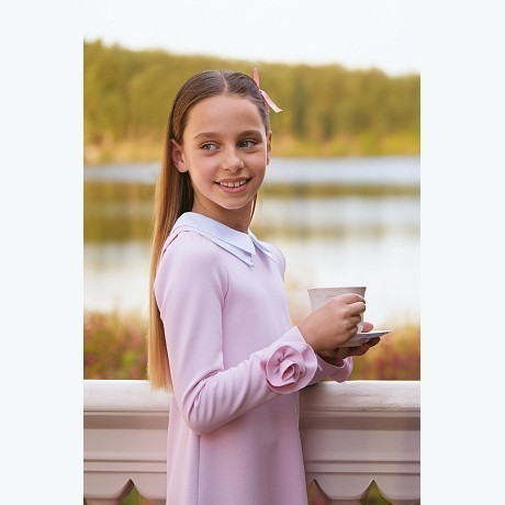 Платье для девочек Lapin House бледно-розового цвета с воротником и рукавами с бантиками