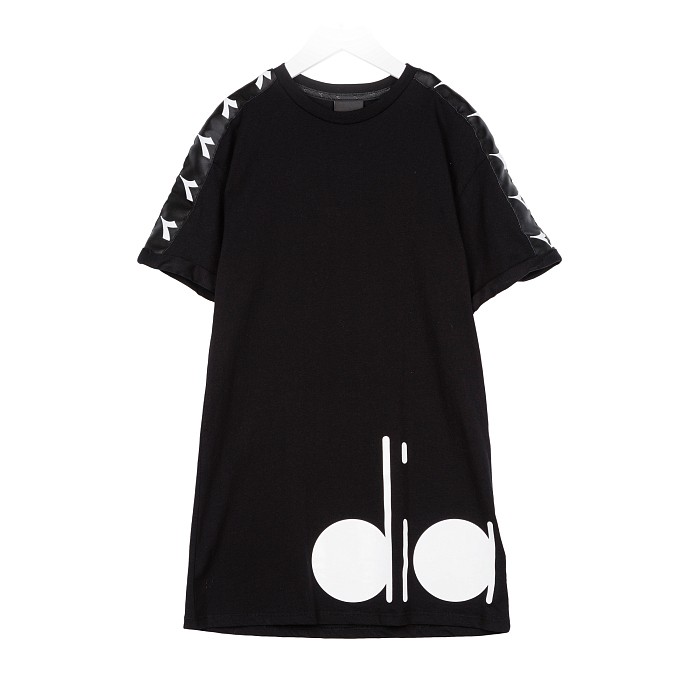 Платье тр. для девочки Diadora – это стильный и комфортный вариант для вашего ребенка! Изготовленное из 100% хлопка, оно украшено крупным логотипом Diadora на спине и контрастными вставками на рукавах. Черный цвет с белыми вставками создает элегантный и современный образ. На фотографии видна аккуратная белая контрастная окантовка по краю рукавов и мягкая текстура ткани. Качество от бренда из Албании и внимание к деталям делают эту модель отличным выбором для вашего девочки!