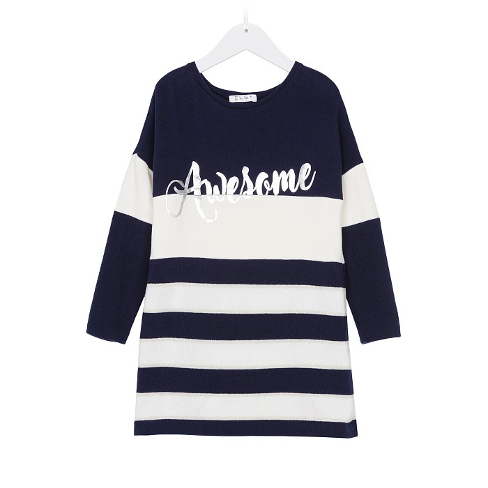 Платье тр. для девочки Elsy Awesome – это идеальный выбор для стильных и комфортных образов! Изготовленное из 46% хлопка, 46% акрила, 4% эластана, 2% полиамида и 2% полиэстера, оно обеспечивает мягкость и комфорт для вашей дочурки. Дизайн платья включает в себя полосы в синем и белом цвете, а также надпись Awesome в серебристом цвете, которая придает платью неповторимый стиль. Качество от Албании делает это платье отличным выбором для вашего ребенка!