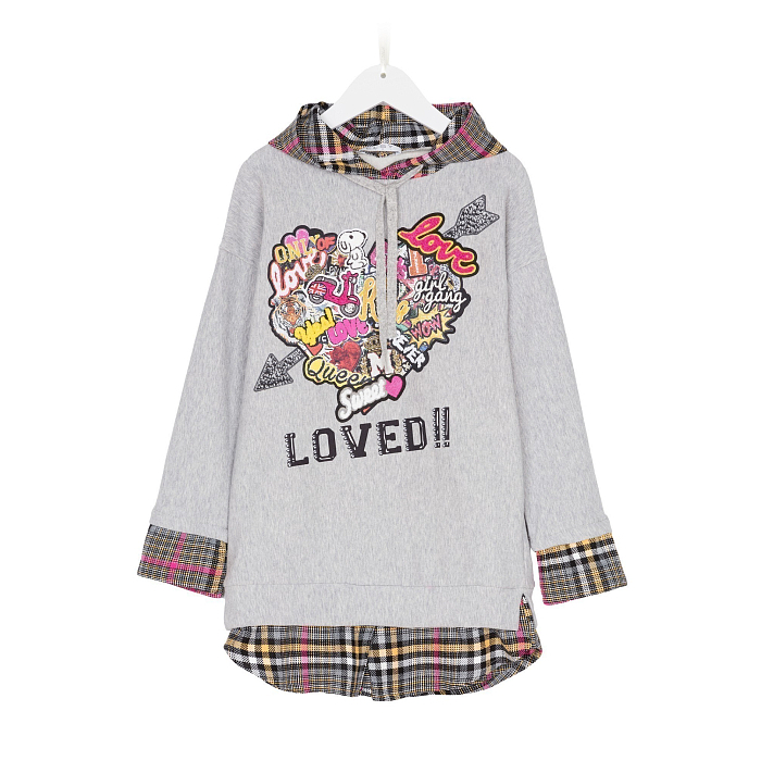 Платье тр. для девочки Elsy – это идеальный выбор для стильных и активных девочек! Изготовленное из 95% хлопка, 5% эластана и 100% акрила, оно обеспечивает мягкость и комфорт. Капюшон с принтом и яркими надписями делает платье не только удобным, но и очень модным. На фотографии видна яркая расцветка принта с надписями и изображениями, а также капюшон с контрастной окантовкой. Качество от итальянского бренда Elsy и внимание к деталям делают это платье отличным выбором для вашего ребенка!