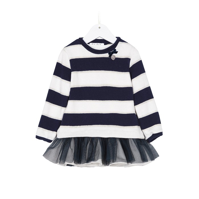 Платье для девочек Elsy – это идеальный выбор для маленьких модниц! Изготовленное из комбинации хлопка и эластана, оно украшено очаровательным принтом и кружевом. Классический бело-синий полосатый узор с акцентом на кружевной юбке создает нежный и элегантный образ. На фотографии видна аккуратная отделка края и мягкая текстура ткани. Качество от бренда из Албании и внимание к деталям делают эту модель отличным выбором для вашего ребенка!