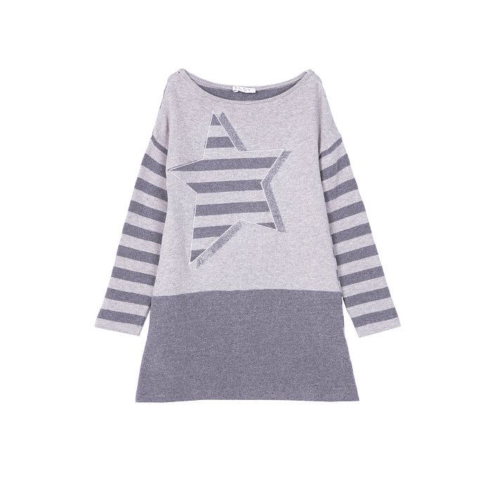 Платье тр. для девочки Elsy – это идеальный выбор для маленьких модниц! Изготовленное из комбинации 48% хлопка, 48% акрила и 4% эластана, оно украшено стильным принтом звезды и полосками. Нежная ткань и мягкие полоски создают комфорт и уют, а звезды придают платью яркость и оригинальность. На фотографии видна аккуратная контрастная окантовка по краю и мягкая текстура ткани. Качество от бренда из Румынии и внимание к деталям делают эту модель отличным выбором для вашего ребенка!