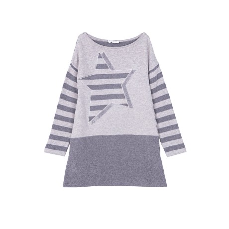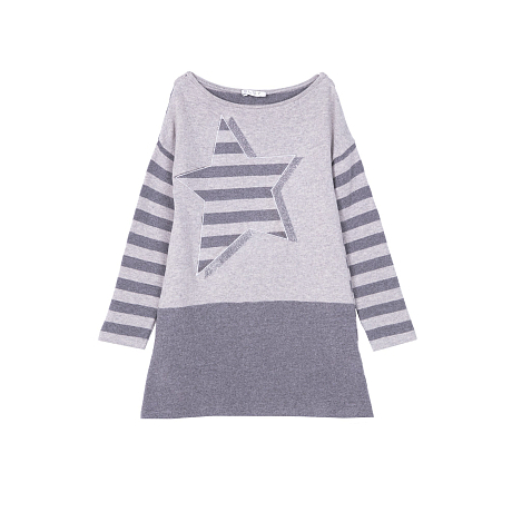 Платье тр. для девочки Elsy – это идеальный выбор для маленьких модниц! Изготовленное из комбинации 48% хлопка, 48% акрила и 4% эластана, оно украшено стильным принтом звезды и полосками. Нежная ткань и мягкие полоски создают комфорт и уют, а звезды придают платью яркость и оригинальность. На фотографии видна аккуратная контрастная окантовка по краю и мягкая текстура ткани. Качество от бренда из Румынии и внимание к деталям делают эту модель отличным выбором для вашего ребенка!