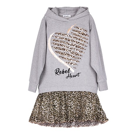 Платье тр. для девочки с принтом леопарда и надписью Rebel Heart
