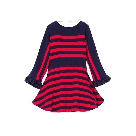 Платье тренчер для девочки Elsy – это идеальный выбор для стильных и комфортных выходов! Изготовленное из комбинации 48% хлопка, 48% акрила и 4% эластана, оно идеально подойдет для теплой погоды. Красные полосы на темном фоне создают яркий и элегантный образ, а контрастные рукава с оборками добавляют нотку романтики. На фотографии видна аккуратная контрастная окантовка по краю и мягкая текстура ткани. Качество от бренда из Румынии и внимание к деталям делают эту модель отличным выбором для вашего ребенка!