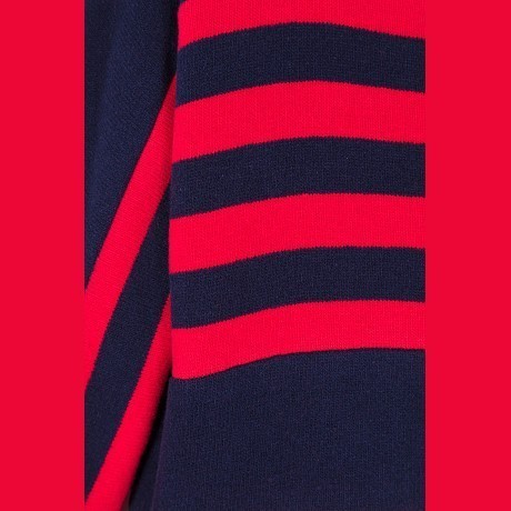 - 🎨 Дизайн: красные полосы, контрастные рукава с оборками