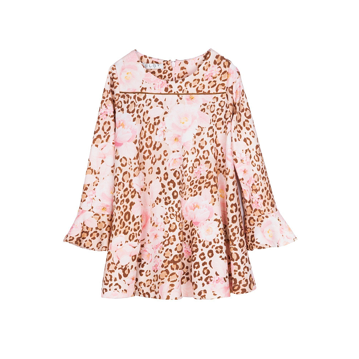 Платье тр. для девочки Elsy – это идеальный выбор для маленьких модниц! Изготовленное из 93% вискозы и 7% эластана, оно украшено очаровательным леопардовым принтом и нежными цветами. Классическая круглая горловина и рукава-колокольчики создают элегантный и комфортный силуэт. Подкладка из 100% полиамида обеспечивает мягкость и комфорт. На фотографии видна аккуратная отделка по краю и мягкая текстура ткани. Качество от итальянского бренда Elsy и внимание к деталям делают эту модель отличным выбором для вашего ребенка!