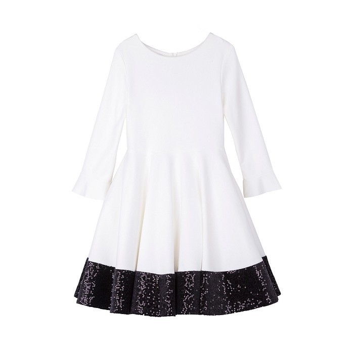 Платье тр. для девочки Elsy – это идеальный выбор для стильных и нежных образов! Изготовленное из 68% вискозы, 27% полиамида и 5% эластана, оно дополнено блестящей отделкой на нижнем крае. Эластичная резинка на талии обеспечивает комфортную посадку. Нежная белая основа с черными блестками создает изысканный и в то же время уютный наряд. На фотографиях видна аккуратная черная резинка на талии и блестящая отделка на нижнем крае. Качество от Китая и внимание к деталям делают эту модель отличным выбором для вашего ребенка!