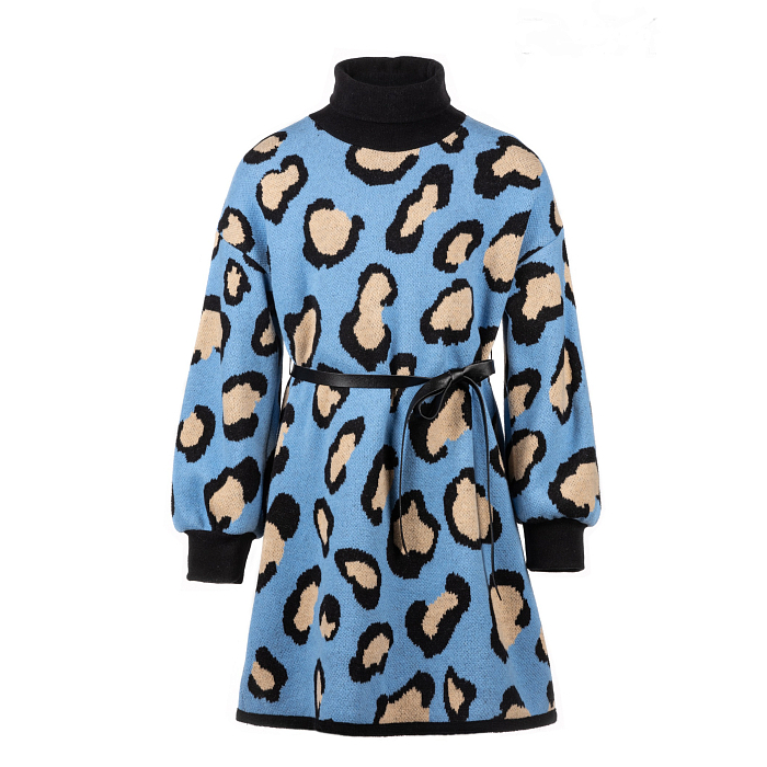 Платье тр. для девочки Elsy – это идеальный выбор для стильных и комфортных образов! Изготовленное из 53% хлопка и 47% акрила, оно украшено очаровательным леопардовым принтом и черным поясом. Нежный голубой фон с черными и светлыми пятнами создает игривое и в то же время элегантное настроение. На фотографиях видна аккуратная черная окантовка по краю и мягкая текстура ткани. Качество от итальянского бренда Elsy и внимание к деталям делают эту модель отличным выбором для вашего ребенка!