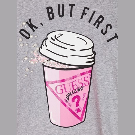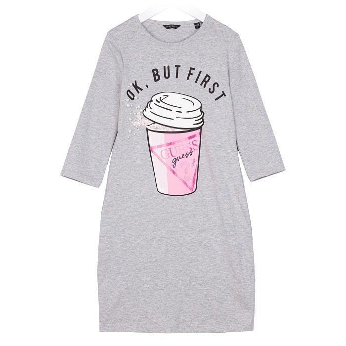Платье тр. для девочки Guess с принтом кофе и надписью - доставка СДЭК по всей России - J93K13K86E0 LHY/14-16/19-02