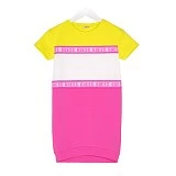 Платье Guess для девочек – это идеальный выбор для вашего ребенка! Изготовленное из 95% хлопка и 5% эластана, оно обеспечивает комфорт и мягкость. Платье украшено ярким принтом логотипа Guess, который делает его стильным и привлекательным. Нежные оттенки желтого, белого и розового создают яркий и модный образ. На фотографии видна округлая горловина, короткий рукав и яркий принт логотипа Guess по всей длине платья. Качество от бренда Guess и внимание к деталям делают эту одежду отличным выбором для вашего ребенка!