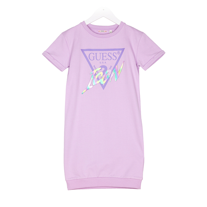 Платье Guess – это идеальный выбор для стильных девочек! Изготовленное из 100% хлопка, оно украшено ярким принтом логотипа Guess. Легкое и удобное платье идеально подойдет для повседневной носки. На фотографиях виден стильный логотип Guess с яркими цветами и эффектом голографии на лицевой стороне. Качество от американского бренда Guess и внимание к деталям делают эту модель отличным выбором для вашего ребенка!