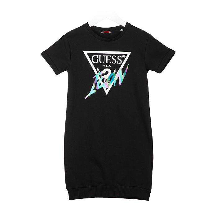 Платье Guess – это идеальный выбор для маленьких модниц! Изготовленное из 100% хлопка, оно украшено ярким принтом Icon и надписью Guess. Черный цвет подчеркивает элегантность и стиль, а принт придает платью уникальность и современность. На фотографиях видна аккуратная окантовка по краю и мягкая текстура ткани. Качество от бренда из США делает эту модель отличным выбором для вашего ребенка!