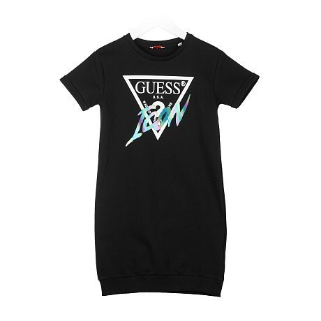 Платье Guess – это идеальный выбор для маленьких модниц! Изготовленное из 100% хлопка, оно украшено ярким принтом Icon и надписью Guess. Черный цвет подчеркивает элегантность и стиль, а принт придает платью уникальность и современность. На фотографиях видна аккуратная окантовка по краю и мягкая текстура ткани. Качество от бренда из США делает эту модель отличным выбором для вашего ребенка!