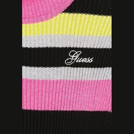 - 🎨 Дизайн: яркие разноцветные полоски, вышивка логотипа Guess, эластичная резинка