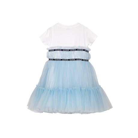 Платье для девочек Guess – это идеальный выбор для маленьких модниц! Изготовленное из 95% хлопка и 5% эластана, оно дополнено белым топом и голубым фатином. Классический дизайн от американского бренда Guess делает это платье настоящим хитом. Нежный голубой фатин с белым топом создает элегантное и в то же время уютное настроение. На фотографиях видна аккуратная белая окантовка по краю и мягкая текстура ткани. Качество от бренда Guess и внимание к деталям делают эту модель отличным выбором для вашего ребенка!