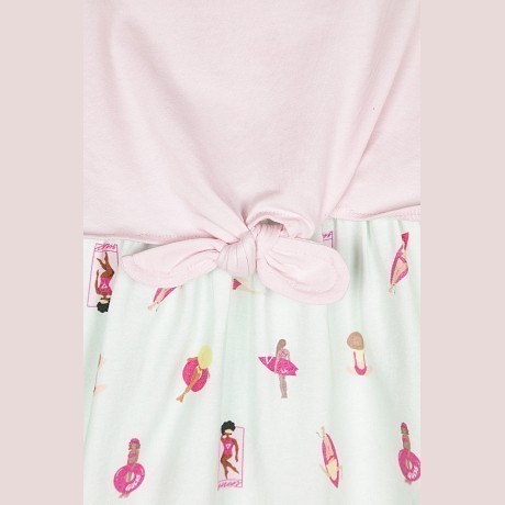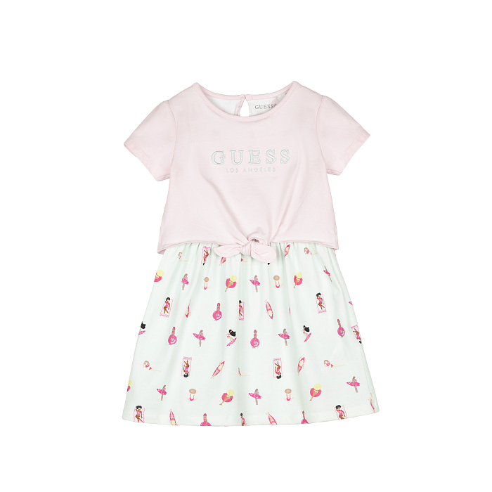 Платье Guess – это идеальный выбор для маленьких модниц! Изготовленное из 95% хлопка и 5% эластана, оно украшено очаровательными балеринами и аксессуарами на светло-зеленом фоне. Мягкая ткань и эластичный пояс создают комфорт и удобство. На фотографиях видна аккуратная белая лента на поясе и мягкая текстура ткани. Качество от бренда из США и внимание к деталям делают эту модель отличным выбором для вашего ребенка!