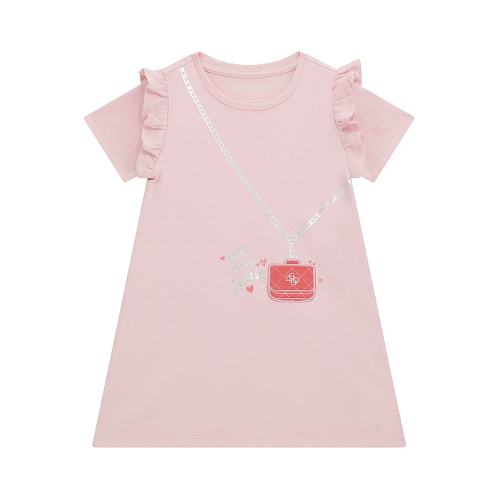 Розовое платье Guess – идеальный выбор для девочек 6 лет! Изготовленное из 100% хлопка, оно украшено очаровательным принтом сумки с цепочкой и надписью Guess. Стильный дизайн и качественный материал делают это платье отличным выбором для вашего ребенка. На фотографиях видна аккуратная розовая основа с ярким розовым принтом сумки и цепочки. Качество от американского бренда Guess и внимание к деталям делают эту модель незаменимой для маленьких модниц!