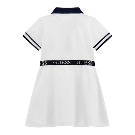 Платье Guess – это идеальный выбор для девочек! Изготовленное из 95% хлопка и 5% эластана, оно украшено очаровательным принтом медведя. Мягкая белая основа с нежным принтом медведя и надписью Guess создает неповторимый образ. На фотографиях видна аккуратная белая окантовка по краю и удобная посадка. Качество от бренда из США и внимание к деталям делают эту одежду отличным выбором для вашего ребенка!