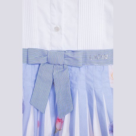 Платье Lapin House – это идеальный выбор для девочек! Изготовленное из 96% хлопка, 3% эластана и 1% полиэстера, оно украшено нежным цветочным принтом и белым воротничком. Классический крой с пышной юбкой и элегантным бантом делает это платье настоящим шедевром. На фотографии видна аккуратная белая окантовка воротника, мягкая текстура ткани и яркие цветы на белом фоне. Качество от Греции и внимание к деталям делают эту модель отличным выбором для вашего ребенка!