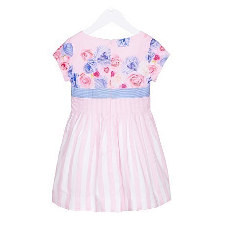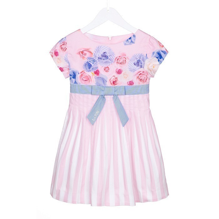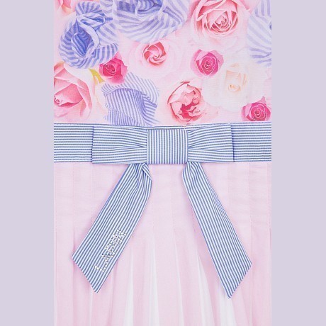 Платье для девочек Lapin House – это идеальный выбор для теплых дней! Изготовленное из 97% хлопка и 7% эластана, оно украшено очаровательным цветочным принтом и голубым бантом. Нежно-розовая основа с яркими розовыми и синими цветами создает легкое и воздушное настроение. На фотографии видна аккуратная голубая контрастная окантовка по краю и мягкая текстура ткани. Качество от бренда из Греции и внимание к деталям делают эту модель отличным выбором для вашего малыша!