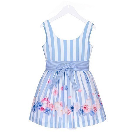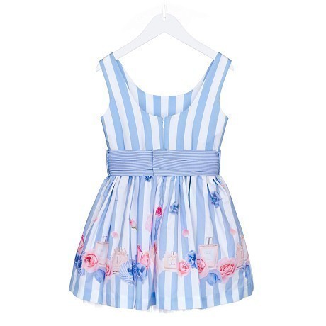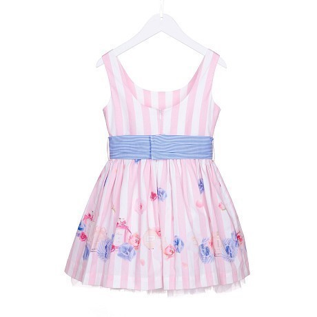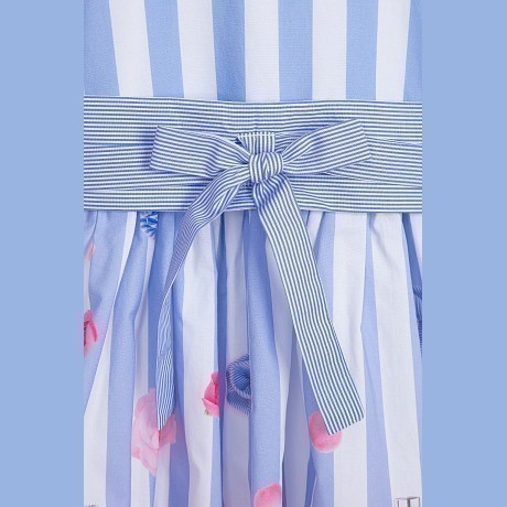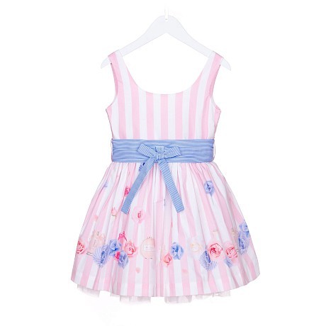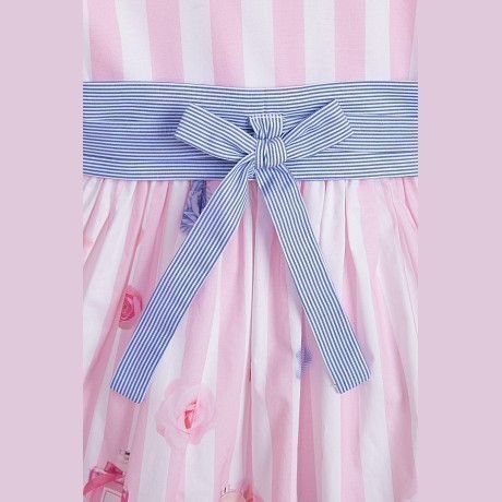Платье Lapin House – это идеальный выбор для девочек! Изготовленное из 97% хлопка и 3% эластана, оно украшено очаровательными розами и полосками. Нежная белая основа с розовыми и белыми полосками создает игривое и в то же время элегантное настроение. На фотографии видна аккуратная голубая контрастная окантовка по краю и мягкая текстура ткани. Качество от бренда из Греции и внимание к деталям делают эту модель отличным выбором для вашего ребенка!