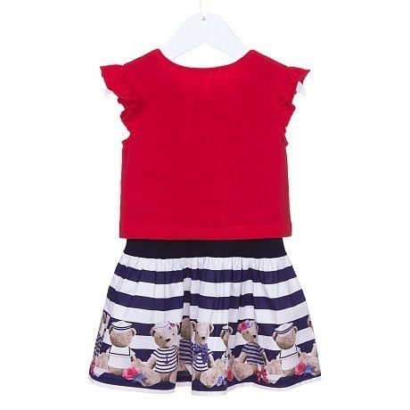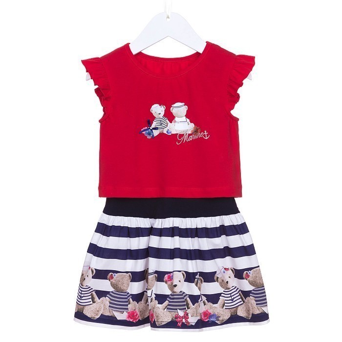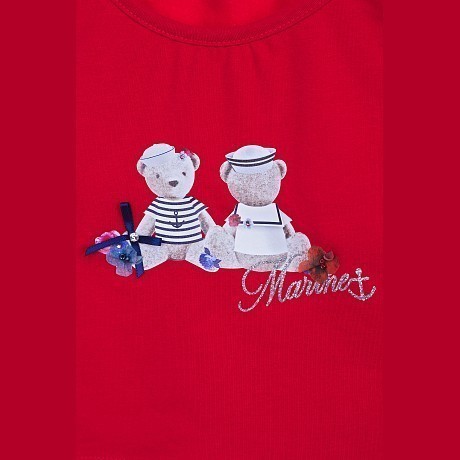 Платье Lapin House – это идеальный выбор для девочек! Изготовленное из 95% хлопка и 5% эластана, оно украшено очаровательными медведями в морском стиле. Красный верх с белыми рукавами и морскими принтами на юбке создают яркий и стильный образ. На фотографиях видны аккуратные оборки на рукавах и мягкая текстура ткани. Качество от бренда из Греции и внимание к деталям делают эту одежду отличным выбором для вашего ребенка!