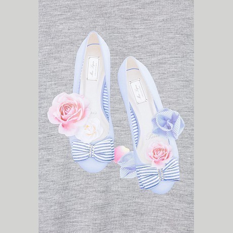 - 🎨 Дизайн: принт туфель и роз, голубая окантовка
