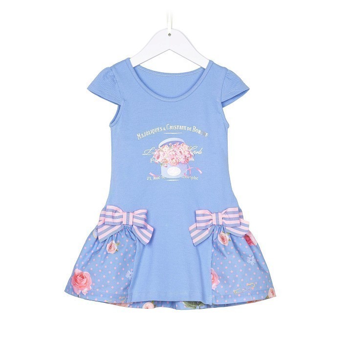 Голубое платье для девочек Lapin House с принтом цветов и бантом