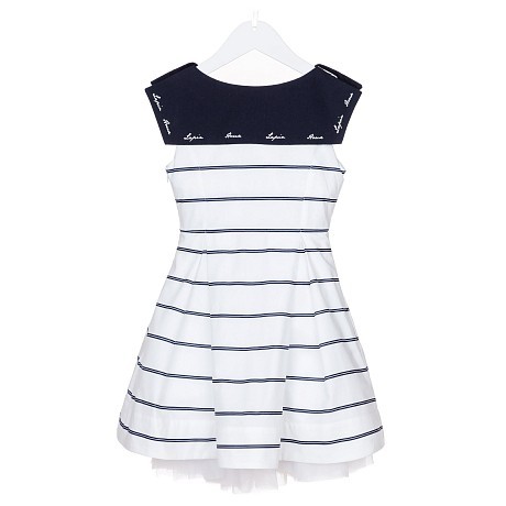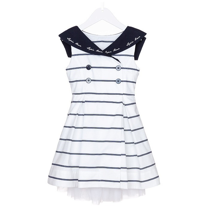 Платье тр. для девочки Lapin House с белыми полосами и синими пуговицами - доставка СДЭК по всей России - 81E3216/18-01