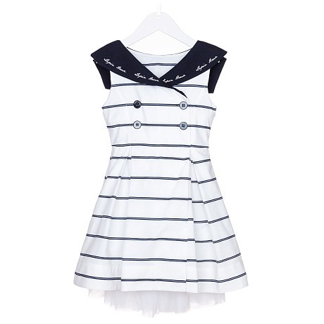Платье тр. для девочки с белыми полосами и синими пуговицами