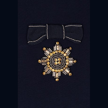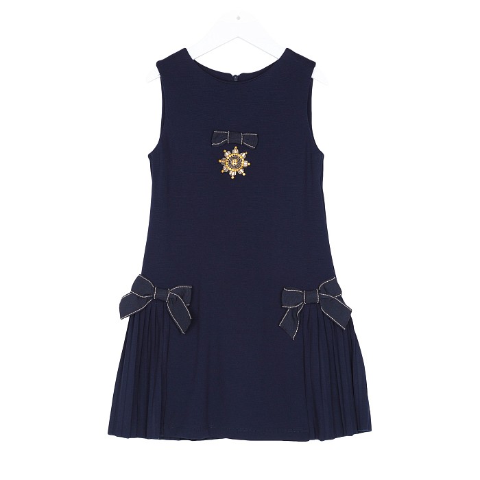- 🎨 Дизайн: вышивка, банты, классический темно-синий цвет с акцентами в белый и золотой