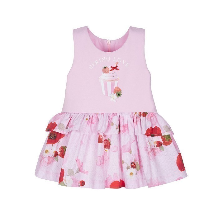 Платье для девочек Lapin House – это идеальный выбор для весны! Изготовленное из 94% хлопка и 6% эластана, оно украшено очаровательными цветами и ягодами. Мягкая розовая основа с яркими цветочными и ягодными принтами создает нежное и весеннее настроение. На фотографии видна аккуратная розовая окантовка по краю и мягкая текстура ткани. Качество от бренда из Греции и внимание к деталям делают эту одежду отличным выбором для вашего малыша!