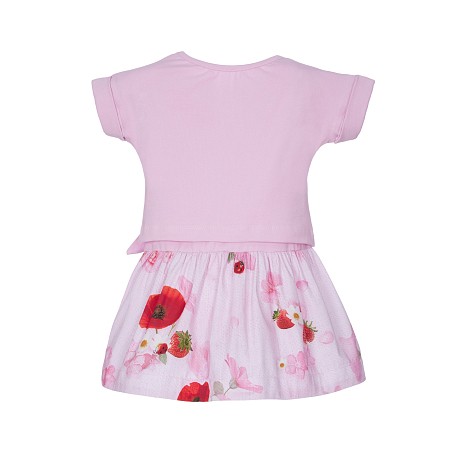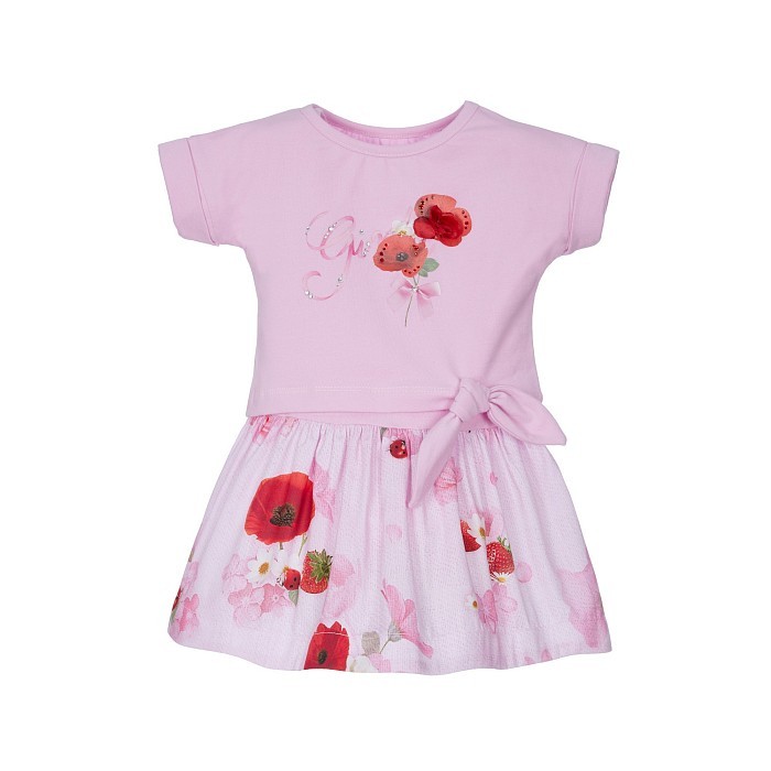Платье Lapin House – это идеальный выбор для маленьких принцесс! Изготовленное из 96% хлопка и 4% эластана, оно украшено ярким цветочным принтом с красными маками, розовыми и белыми цветами, а также бантом на талии. Нежная розовая основа с яркими цветами создает нежное и в то же время яркое настроение. На фотографии видна аккуратная белая контрастная окантовка по краю и мягкая текстура ткани. Качество от бренда из Греции и внимание к деталям делают эту модель отличным выбором для вашего ребенка!