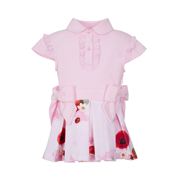 Платье тр. для девочки Lapin House – это идеальный выбор для теплых дней! Изготовленное из 97% хлопка, 2% эластана и 1% полиэстера, оно украшено очаровательным цветочным принтом с яркими красными маками, белыми цветами и красными божьими коровками на светло-розовом фоне. Крупные банты на поясе и рукавах добавляют шарма и изящества. Нежная ткань с приятной текстурой и эластичными элементами делают это платье удобным и комфортным для вашего ребенка. На фотографиях видны аккуратные бант на поясе и на рукавах, а также мягкая текстура ткани. Качество от бренда из Греции и внимание к деталям делают эту модель отличным выбором для вашего маленькой принцессы!