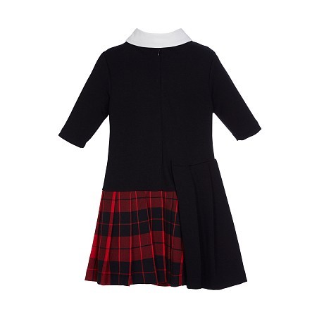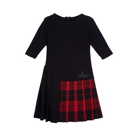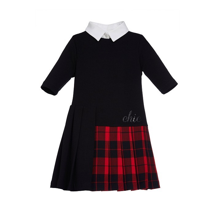 - 🎨 Дизайн: белая воротничная планка, клетчатая юбка, надпись "chic"