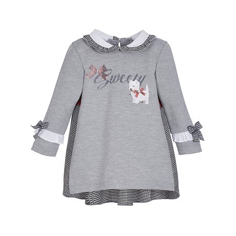 Платье для девочек Lapin House – это идеальный выбор для маленьких модниц! Изготовленное из 53% вискозы, 26% полиэстера, 19% хлопка и 2% эластана, оно идеально подойдет для теплых дней. Милый принт с изображением собаки и бантом делает это платье настоящим хитом сезона. На фотографии видна аккуратная белая окантовка по краю рукавов и юбки, а также черно-белые банты на рукавах и воротнике. Качество от бренда из Греции и внимание к деталям делают эту модель отличным выбором для вашего ребенка!