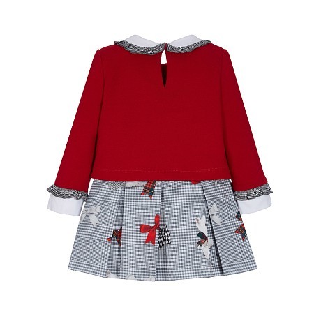 - 🎨 Дизайн: красный верх, белый воротничок, принт с бантом, гingham-принт