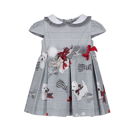 Платье для девочки Lapin House – это идеальный выбор для маленьких модниц! Изготовленное из 93% хлопка, 6% вискозы и 1% эластана, оно украшено очаровательными белыми собаками с красными бантиками и космическими ракетами на серо-белом фоне. Нежная ткань с яркими акцентами создает игривое и в то же время уютное настроение. На фотографиях видны аккуратные белые контрастные окантовки по краю и мягкая текстура ткани. Качество от бренда из Греции и внимание к деталям делают эту модель отличным выбором для вашего ребенка!