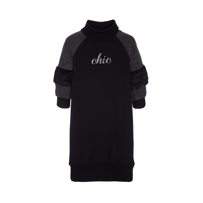 - 🎨 Дизайн: надпись chic на рукавах, черный цвет основы, серые рукава