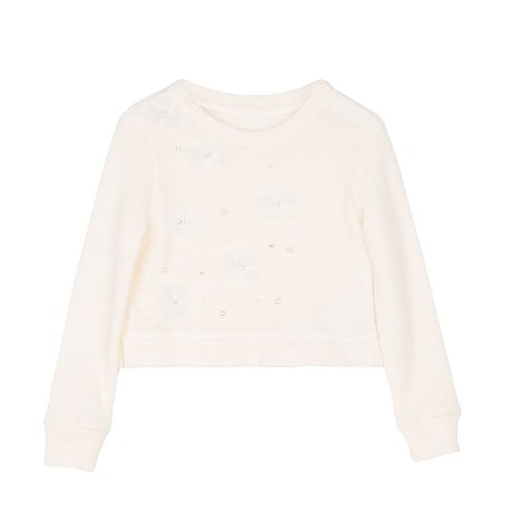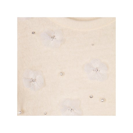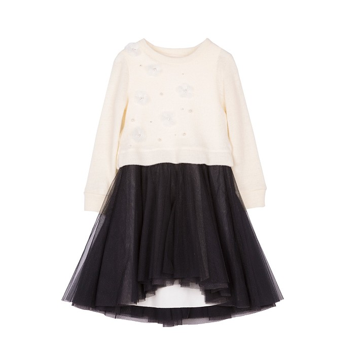 - 🎨 Дизайн: белые цветы на джемпере, черная юбка из тюля