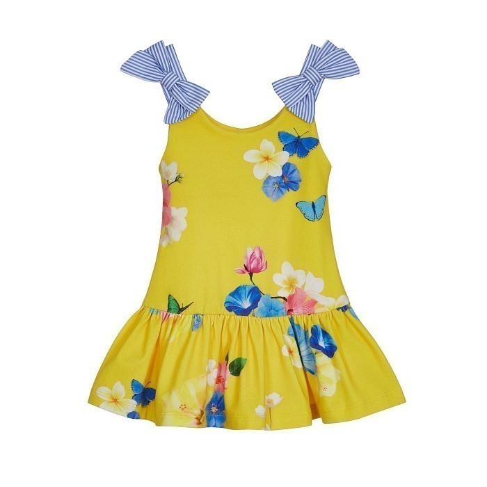 Желтое платье тренчер для девочки Lapin House с цветочным принтом и бабочками