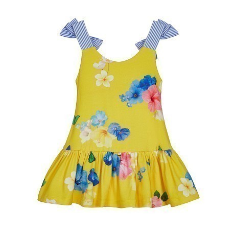 Желтое платье тренчер для девочки с цветочным принтом и бабочками